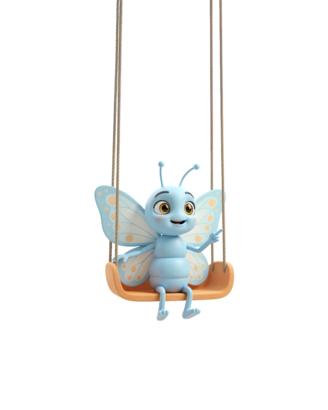 Ein freundlicher, lichtdurchfluteter Spielraum, in dem Rio – unser kleiner Schmetterlingsfreund – für ein sicheres Umfeld sorgt und Kinder zum Bewegen, Entdecken und Träumen einlädt.